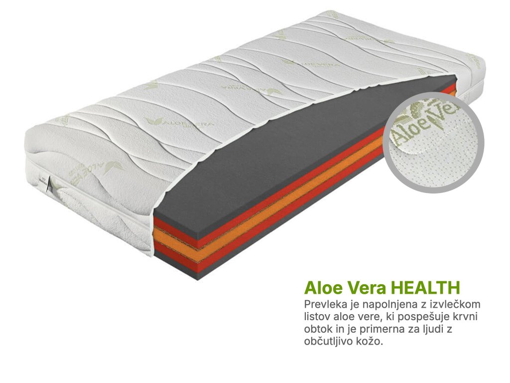 Materialna sestava: PUR pena, NightFly pena, kokos, hladna HR pena, prevleka