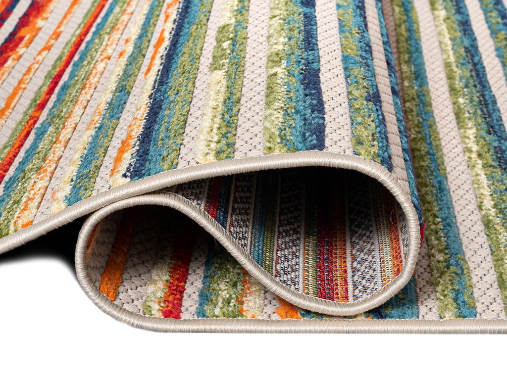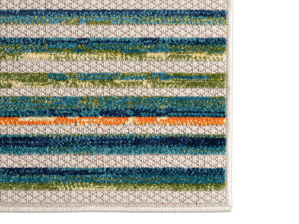 Moderni črtasti tepih ima ščetine z gostoto 1500g/m2 in 6 milimetrov nizek vlas. Tepih ima mehka in prožna vlakna, je odporen proti obrabi. Prednost je enostavno vzdrževanje tepiha. Črtasti tepih popestri spalnico, dnevno sobo ali otroško sobo. Primeren za moderen in tradicionalen interier vašega doma.