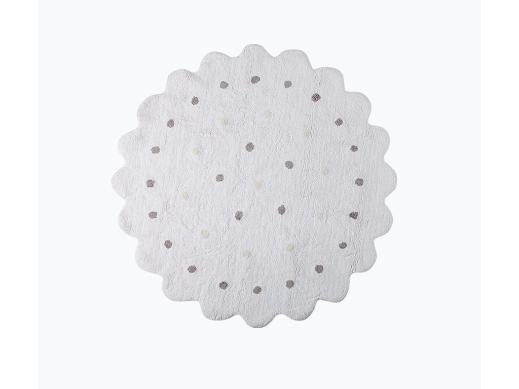 Velika okrogla preproga španske znamke Lorena Canals je ročno izdelana iz kakovostne bombažne preje v nežni beli barvi. Okrogla oblika, valovit rob in pike ji dajejo originalen značaj. Postala bo okras otroške sobe, prav tako pa bo popolno izgledala v sobi za mladostnike. Za otroke ustvarja popolno toplotno izolacijo. Na voljo je v velikosti 140 cm.