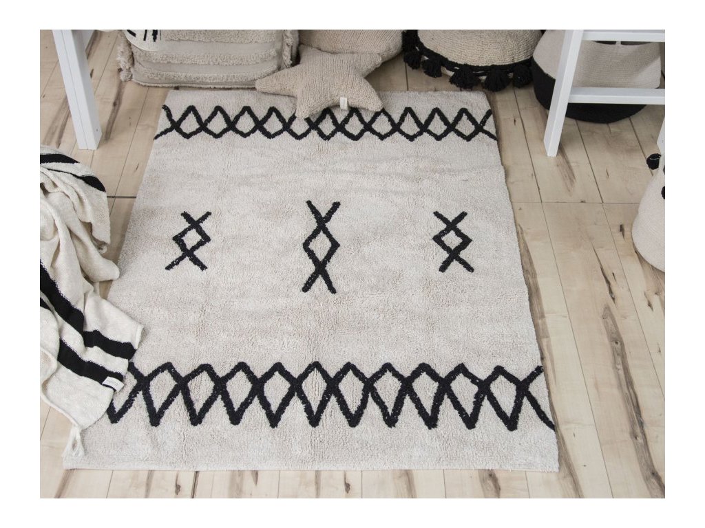 Preproga ATLAS se popolnoma prilega vsakemu notranjemu prostoru. Je univerzalna, lahko jo postavite v dnevno sobo, spalnico ali otroško, oziroma študentsko sobo. Preproga je okrašena s črnim etničnim vzorcem. Na voljo je v dimenziji 120x160 cm. S to preprogo bo vsaka soba ali dnevna soba bolj prijetna.