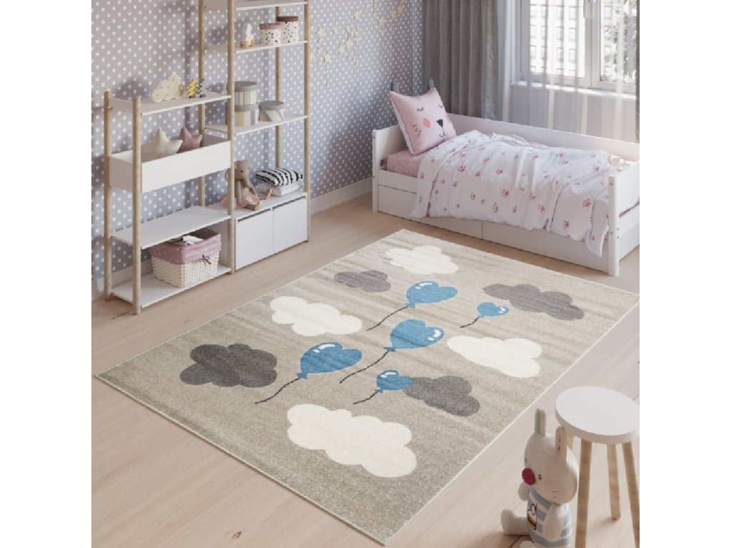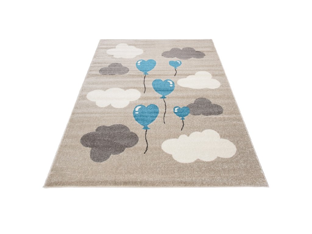 Moderni otroška preproga Balone z vzorcem oblakov in balonov bo razveselila vsakega otroka. Poživila bo otroško sobo in otrokom dodala udobje pri igri. Izdelana je iz kakovostnih polipropilenskih preje. Otroška preproga je enostavna za vzdrževanje in odporna proti vodi. Tisk je iz barv, odpornih proti obrabi.