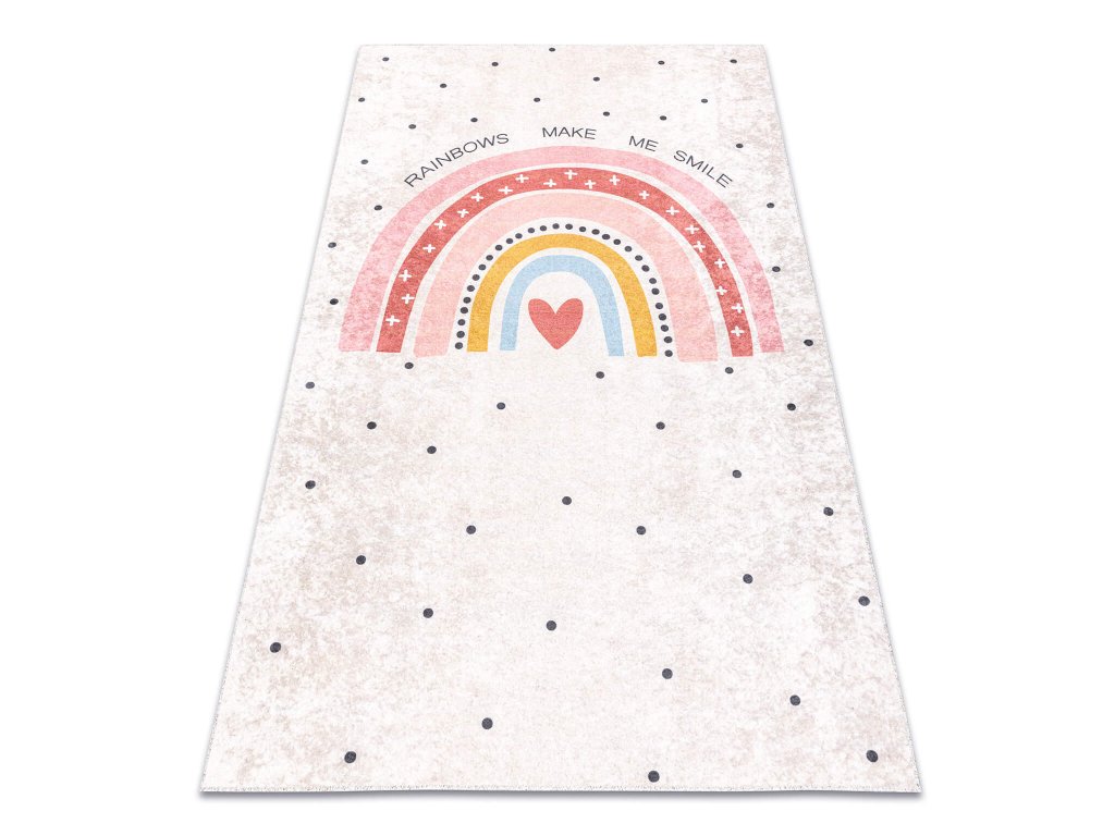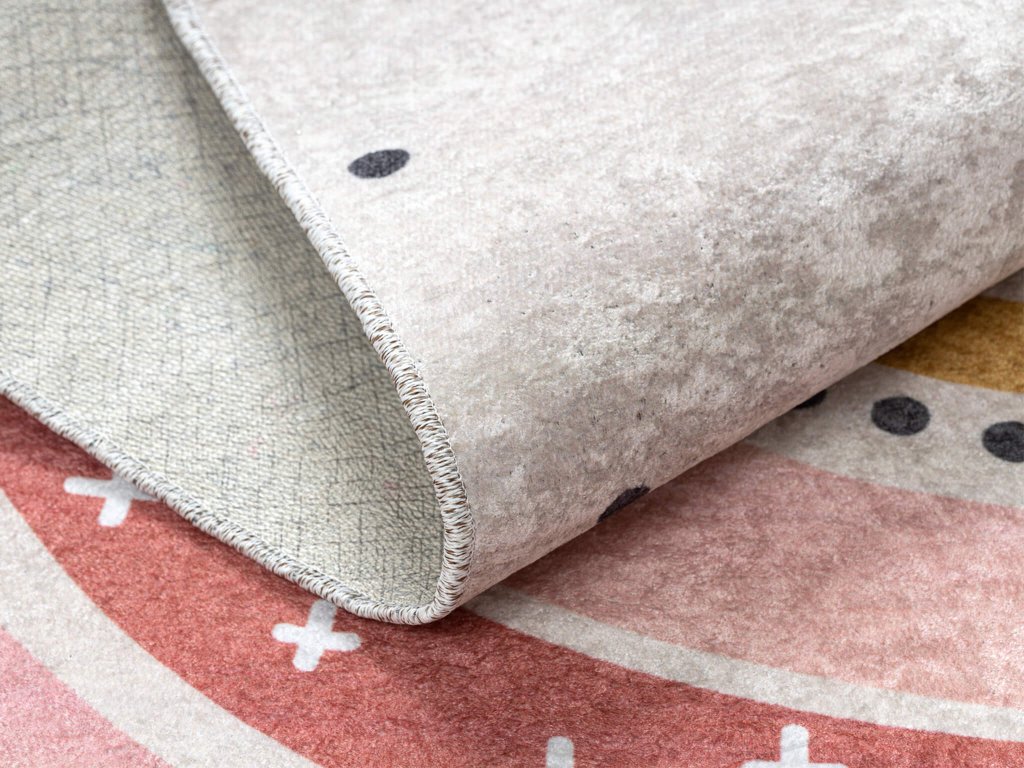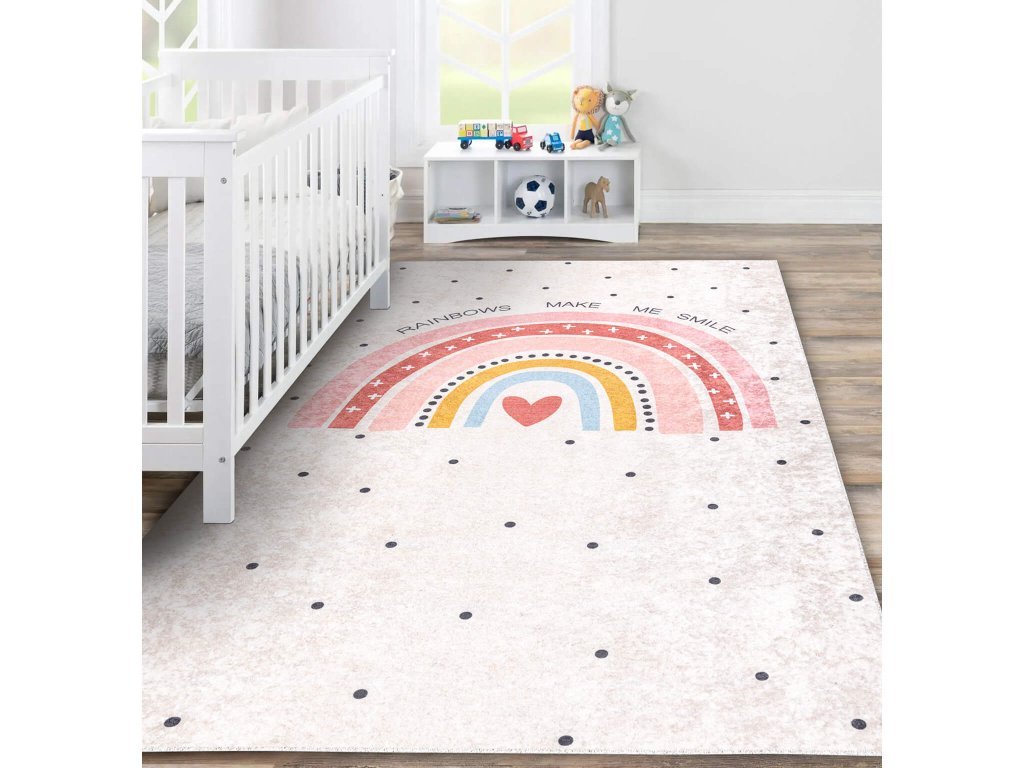 Otroško sobo opremite z našo proti zdrsno preprogo Rainbow, ki ponuja varen in udoben prostor za igro in sprostitev. Bež preproga z barvno mavrico in pikami je primerna predvsem za dekleta. Izdelana iz kakovostnega poliestera, je trpežna in enostavna za vzdrževanje. Njeno proti zdrsno dno zagotavlja varnost na katerikoli vrsti tal, vključno s talnim gretjem. Poleg tega jo je mogoče enostavno prati v pralnem stroju na 30°C, kar poenostavi njeno vzdrževanje. Naredite otroško sobo stilsko in varno mesto z našo proti zdrsno preprogo Rainbow.