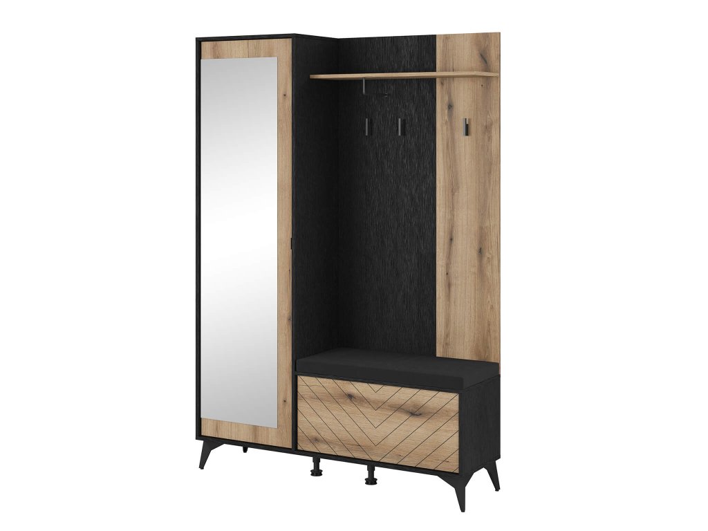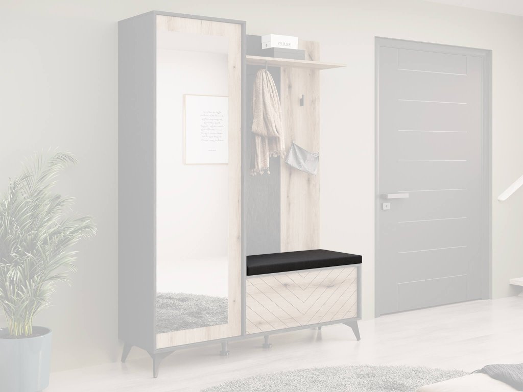Oblazinjen podsedek k obešalni steni z ogledalom Diamond ustvari v predsobi udoben kotiček za sedenje, ki vam olajša sezuvanje in obuvanje. Skupaj z omarico za čevlje odlično služi kot klop za sedenje, pri čemer lahko omarico uporabite tudi kot omarico za shranjevanje kap, rokavic ali šalov.