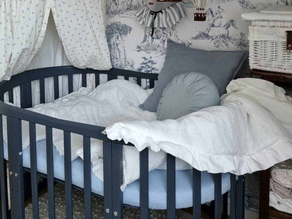 Oblikovana okrogla rastoča posteljica 7v1 v beli barvi