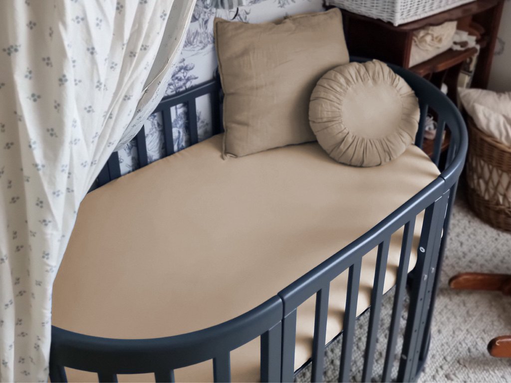 Rjava bombažna rjuha v dimenziji 73x122 cm v posebni obliki pripravljena za ovalno rastočo posteljico 7v1. K bombažni rjuhi si lahko dopolnite tudi til baldahin v enakem odtenku rjave barve, da bo vaša spalnica z otroško posteljico vedno videti lepo in stilsko. Otroška rjuha ima elastično gumo, da se lepo prilagodi in objame atipičen ovalni vzmetnico v rastoči posteljici 7v1. Zahvaljujoč gumi bo rjuha lepo držala na svojem mestu. Barvna otroška rjuha je izdelana iz kakovostnega organskega bombaža s certifikatom Oeko-Tex Standard 100. Bombaž je prijeten, zračen material, ki omogoča optimalno kroženje zraka in ne zadržuje vlage, ki bi se lahko morebiti nabirala v vzmetnici. Bombaž podpira odvajanje vlage.
