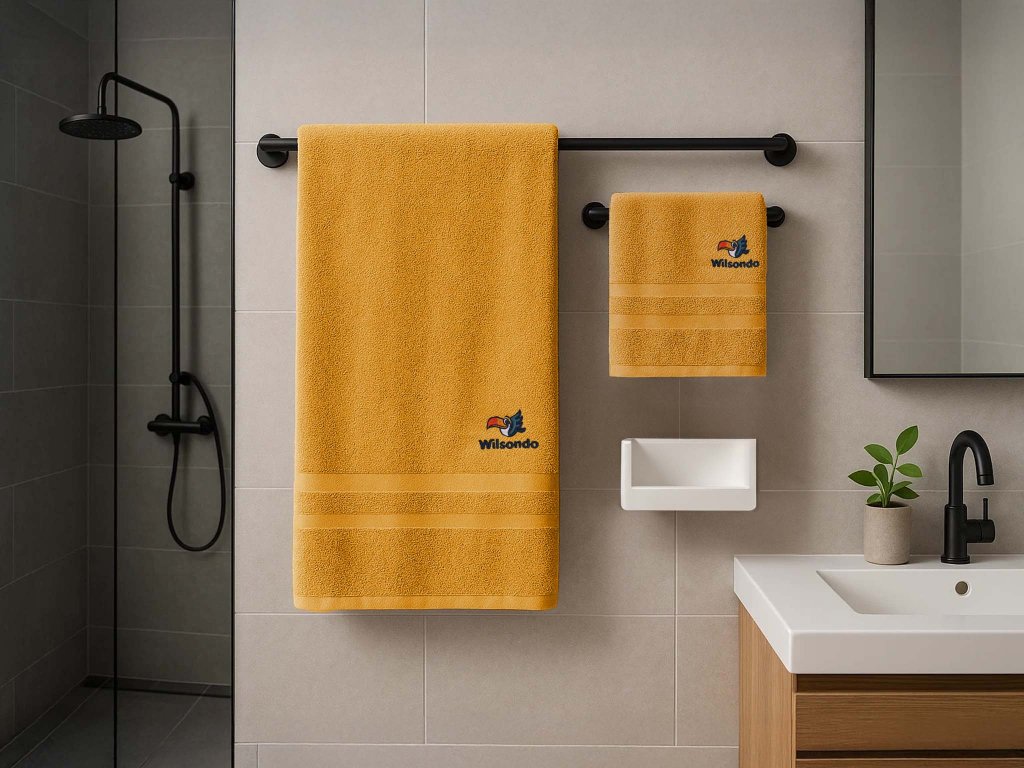 Oranžna brisača Wilsondo v velikosti 50×30 cm bo prinesla v vašo kopalnico ali športno torbo pravo mero svežine. Izdelana je iz 100 % frotirne bombaža z gramaturami 400 g/m², zato je mehka, dobro vpija in hitro suši. Zaradi kompaktne velikosti je idealna za roke, obraz ali kot brisača za potovanja ali fitnes. Ojačana dvojna zanka in trdno obrobljen rob zagotavljata dolgo življenjsko dobo. Ne manjka niti diskretni logotip Wilsondo, ki dopolnjuje njen sodoben videz.