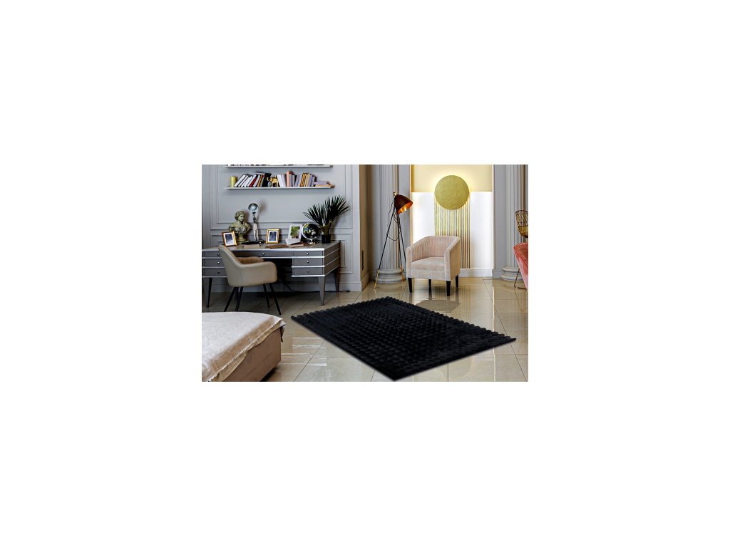 Dodajte svoji notranjosti luksuzen in moderen element z našo črno preprogo Bubble 3D. Ta preproga je zasnovana tako, da posnema zajčje krzno, kar ji daje mehak in prijeten občutek na dotik. Izdelana iz kakovostnega poliestera, je preproga trpežna in enostavna za vzdrževanje. Njena pravokotna oblika in elegantna črna barva jo naredita idealen dodatek za vsak moderen prostor. Strukturirana preproga ima površino z različnimi višinami in teksturami vlaken, ki ustvarjajo zanimiv vizualni in otipljiv učinek.