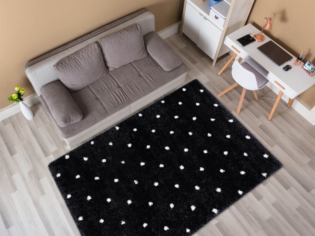 Predstavljamo vam kos, ki bo takoj dodal veselje in udobje v vaš dom - preproga Febie. S svojo črno barvo in pikčastim belim vzorcem bo postala središče pozornosti v marsikateri sobi. Ta pravokotna preproga ni namenjena le odraslim, ampak tudi otrokom, ki bodo cenili igriv vzorec. Febie je izdelana iz 100% poliestra in njen 5 cm visok Shaggy vlas je iz mehkih in elastičnih vlaken, kar zagotavlja maksimalno udobje pri vsakem koraku. Poleg tega je ta preproga zelo enostavna za čiščenje, kar pomeni, da jo je treba le redno sesati za ohranjanje lepega videza. Lahko jo celo uporabljate s talnim ogrevanjem, s čimer zagotovite toplo in prijetno vzdušje v notranjosti. Febie se prilega različnim sobam v vašem domu, od spalnice in dnevne sobe do otroške sobe. Njena edinstvena zasnova in udobje jo naredita odličnim dodatkom v vsakem gospodinjstvu. S preprogo Febie boste pridobili ne le stilski element, ampak tudi udobje in enostavno vzdrževanje za vaš dom.