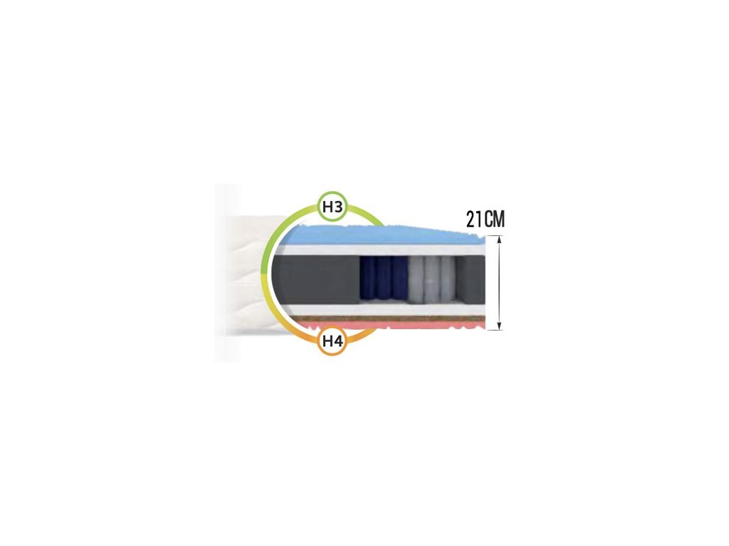 Materialna sestava: Poliuretanska penaz gostoto 25 kg/m3, žepkaste vzmeti, masažna hladna HR pena, spominska pena Viscoz gostoto 40 kg/m3, kokos, prevleka