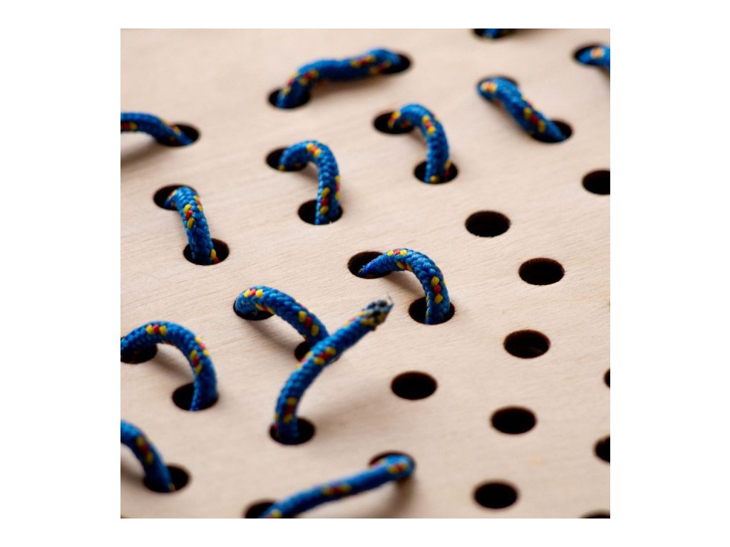Prevlakujoča izobraževalna pripomoček v obliki rakete z vezalkami trenira ne le fino motoriko, ampak tudi potrpežljivost in koncentracijo otroka. Je dobavljena v naravni barvi, obdelana in brušena. Je namenjena za dodelavo s barvicami, najbolje z akrilnimi barvami ali flomastri – otroški domišljiji ni meja in za olepšanje z vezalko, ki jo postopoma prepleta skozi pripravljene luknje. Igrača je primerna tudi kot praktično darilo za najmlajše. Izdelano iz FSC certificirane vezane plošče.
