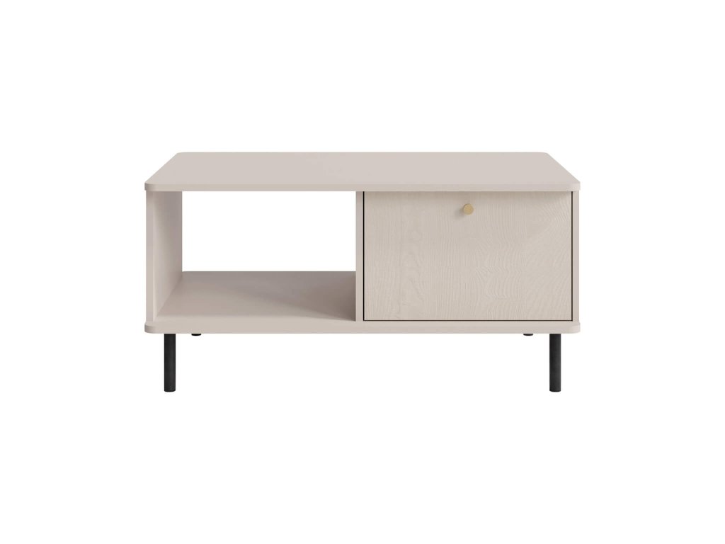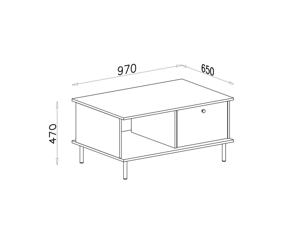 Moderni konferenčna miza GRANDE pravokotne oblike se bo prilegala tudi v manjšo dnevno sobo. Peščena barva na ploščah mize je dopolnjena z zlato barvo na kovinskem ročaju predala in črno barvo na kovinskih nogicah. Miza ima eno odprto polico pod zgornjo ploščo in manjši predal, v katerega lahko skrijete vse daljinske upravljalnike in druge drobnarije, ki jih ne želite imeti na očeh. Konferenčna miza je izdelana iz kakovostne laminirane plošče.