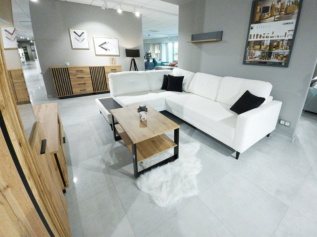 Konferenčna miza Lamelo – Miza, postavljena na stiliziranih nogah, poleg glavne površine nudi tudi eno odlagalno, kjer lahko shranite TV daljinec, knjigo ali kakšne malenkosti.