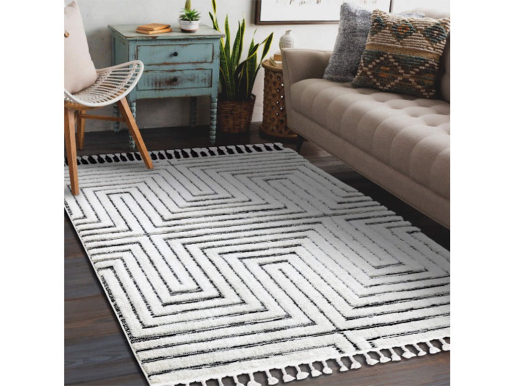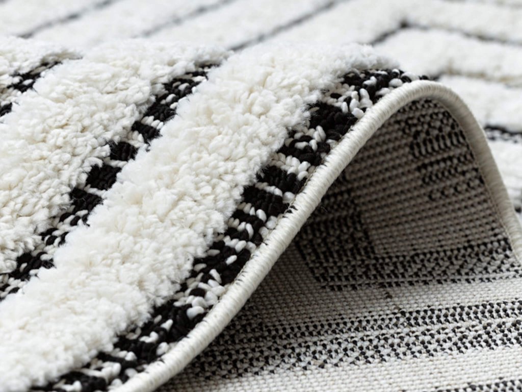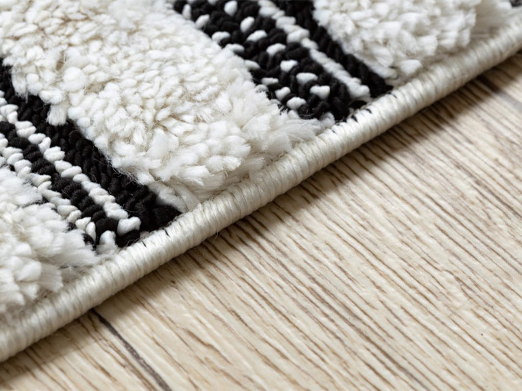 Običajen del gospodinjstev so preproge, ki dodajajo toplino in udobje vašemu notranjemu prostoru. Pri nas imamo v ponudbi številne preproge z različnimi dizajni. Strapkasta preproga Sevilla v kremno-črnem dizajnu je primerna za kuhinjo, spalnico ali hodnik. Vlakna na preprogi so dolga od 8 do 16 mm, saj ima preproga dvojnivojsko dno. Izdelana je iz 100% poliestra, ki je trpežen in odporen proti mečkanju. Vlakna so sintetična in varna za alergike ali otroke. Preprogo Sevilla z nežnim maroško vzorcem ponujamo v različnih velikostih. Lahko se uporablja pri talnem ogrevanju. Če želite ohraniti brezhibno stanje, priporočamo redno sesanje.
