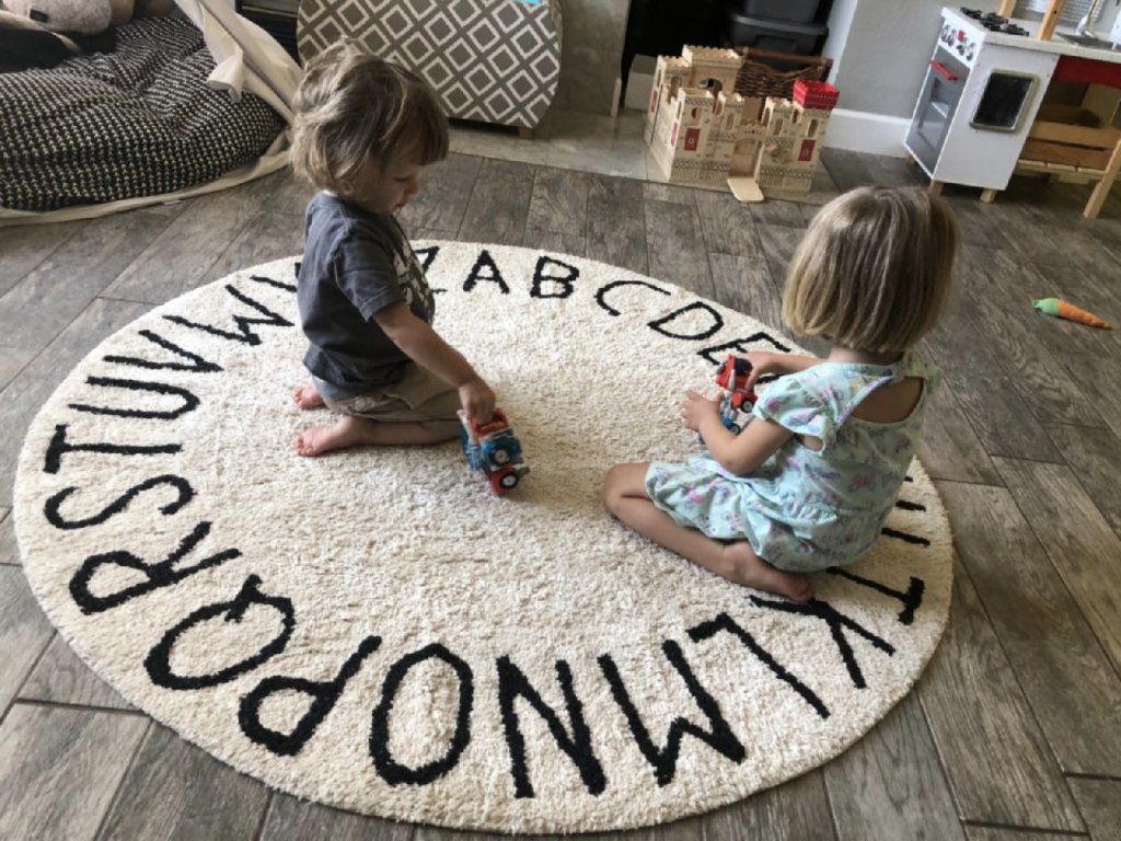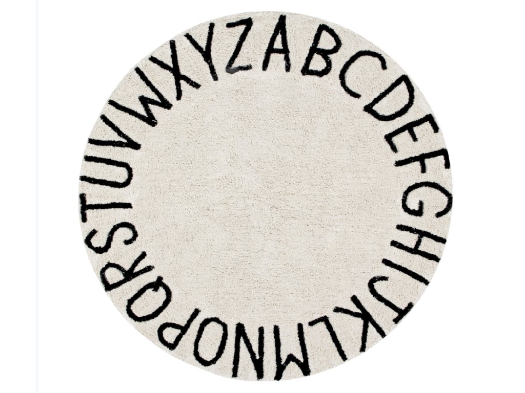 Okrogla preproga španske znamke Lorena Canals pritegne pozornost že na prvi pogled s svojim nenavadnim motivom abecede. V otroški sobi bo delovala kot izvirna dekoracija. Poleg praktične funkcije bo edinstven dodatek, ki spodbuja učenje. Okrogla otroška preproga v kremni barvi, okrašena s črnimi črkami, se prilega otroški sobi v skandinavskem slogu. Na voljo je v velikosti 150 cm.