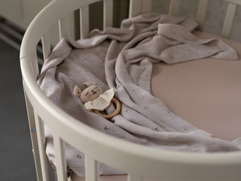 Oblikovana okrogla rastoča posteljica 7v1 v beli barvi
