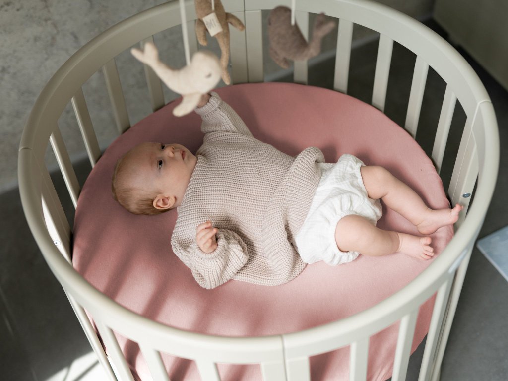 Okrogla roza rjuha za rastočo posteljico 7v1. Rastoče posteljice imamo na voljo v več barvnih izvedbah in zdaj si lahko k njim izberete iz ponudbe barvnih rjuh in baldahinov. Bombažna rjuha za otroško posteljico ima elastično gumo, da se lepo prilagodi in objame atipičen okrogel vzmetnico v rastoči posteljici 7v1. Zahvaljujoč gumi bo rjuha lepo držala na svojem mestu. Barvna otroška rjuha je izdelana iz kakovostnega organskega bombaža s certifikatom Oeko-Tex Standard 100. Bombaž je prijeten, zračen material, ki omogoča optimalno kroženje zraka in ne zadržuje vlage, ki bi se lahko nabirala v vzmetnici. Bombaž podpira odvajanje vlage.
