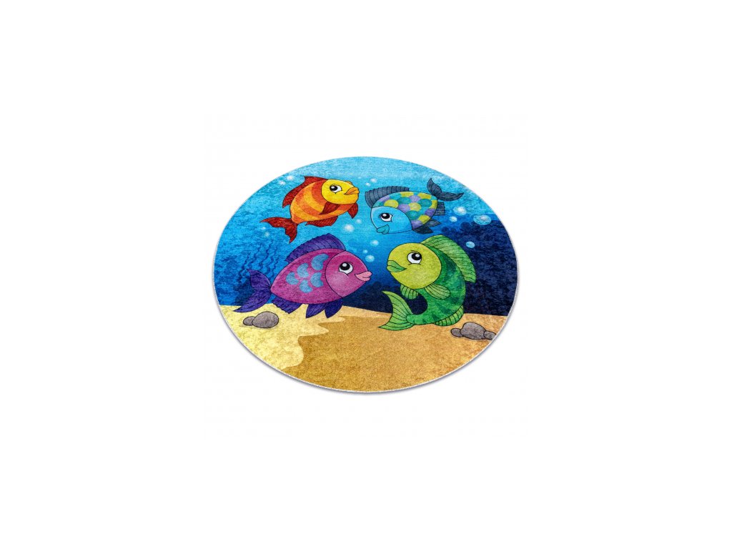 Otroška preproga Junior Fish je idealen dodatek za dekliško in fantovsko sobo. Ta preproga z motivom rib in oceana je zasnovana tako, da prinaša v prostor igrivost in hkrati zagotavlja varnost zahvaljujoč protizdrsni obdelavi. Izdelana iz 100% poliestra, preproga je ne le mehka in prijetna na dotik, ampak tudi praktična, saj jo lahko preprosto perete v pralnem stroju. S debelino približno 5 mm in težo 700 g/m2 je dovolj robustna, da prenese vsakodnevno uporabo, in hkrati lahka za manipulacijo. Njena modra barva dodaja prostoru svežino in mir, medtem ko je okrogla oblika idealna za ustvarjanje prijetnega kotička za igro ali počitek. Ta preproga je odlična izbira za starše, ki iščejo kombinacijo estetike, funkcionalnosti in varnosti za svoje otroke.