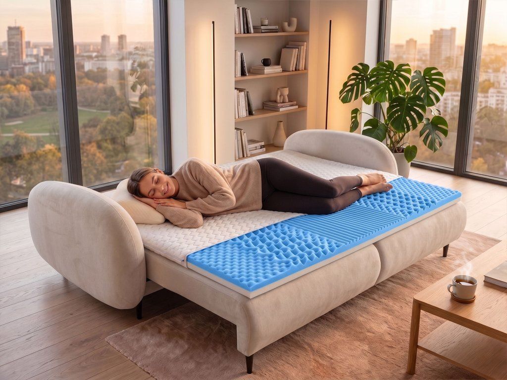 Iščete način, kako vrniti udobje vašemu staremu ležišču brez investicije v novo posteljo? Kakovostna nadvzmetnica Airlia z višino 8 cm predstavlja učinkovito rešitev za vse, ki si želijo mehkejšo in bolj zdravo spalno površino. Ta nadvzmetnica združuje dve plasti posebej profilirane PUR pene (T28 in T25), ki ustvarjata nežen mikromasažni učinek. Redne izbokline jedra podpirajo sprostitev mišic in izboljšujejo prekrvavitev kože med nočjo. Nadvzmetnice tega tipa poleg tega bistveno izboljšajo kroženje zraka, s čimer preprečujejo pregrevanje in podaljšujejo življenjsko dobo vaše glavne vzmetnice.