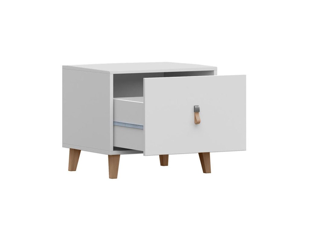 Bela nočna omarica s prostorom za shranjevanje osebnih stvari. Univerzalna omarica je idealna za otroško sobo ali spalnico.