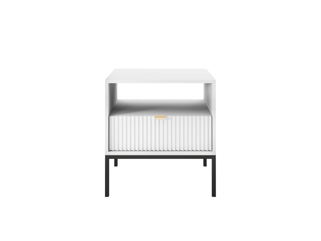 Praktičen in hkrati moden. Beli nočni omarica Nova S54 vam bo pomagala razumno in elegantno urediti vaš interier. S svojim praktičnim shranjevalnim prostorom lahko imate v postelji pri roki karkoli, kar potrebujete, in to brez tega, da bi morali zapustiti svoje udobje. Ima odprt shranjevalni prostor in predal.