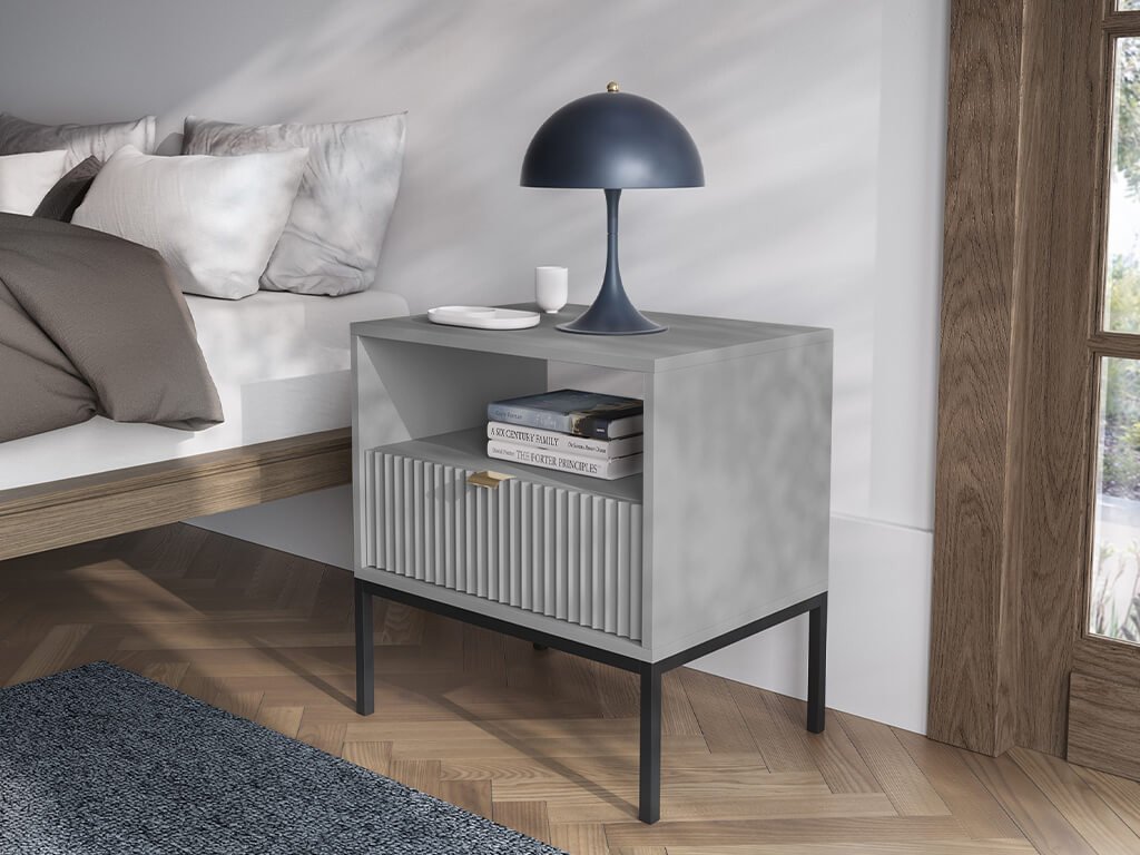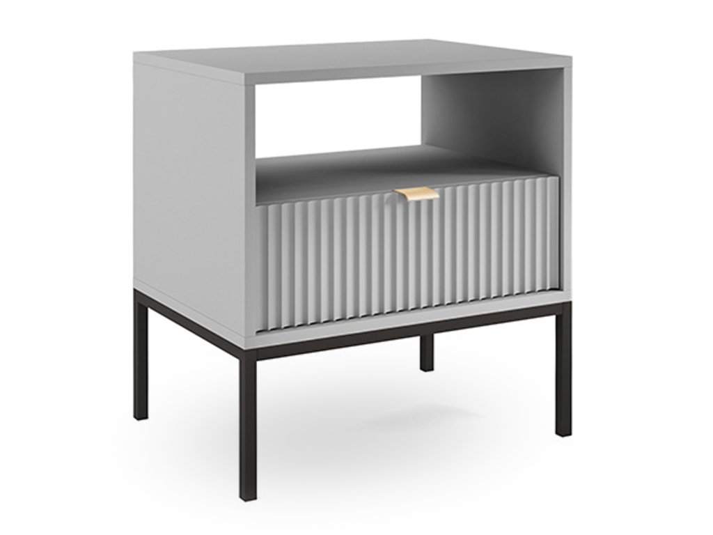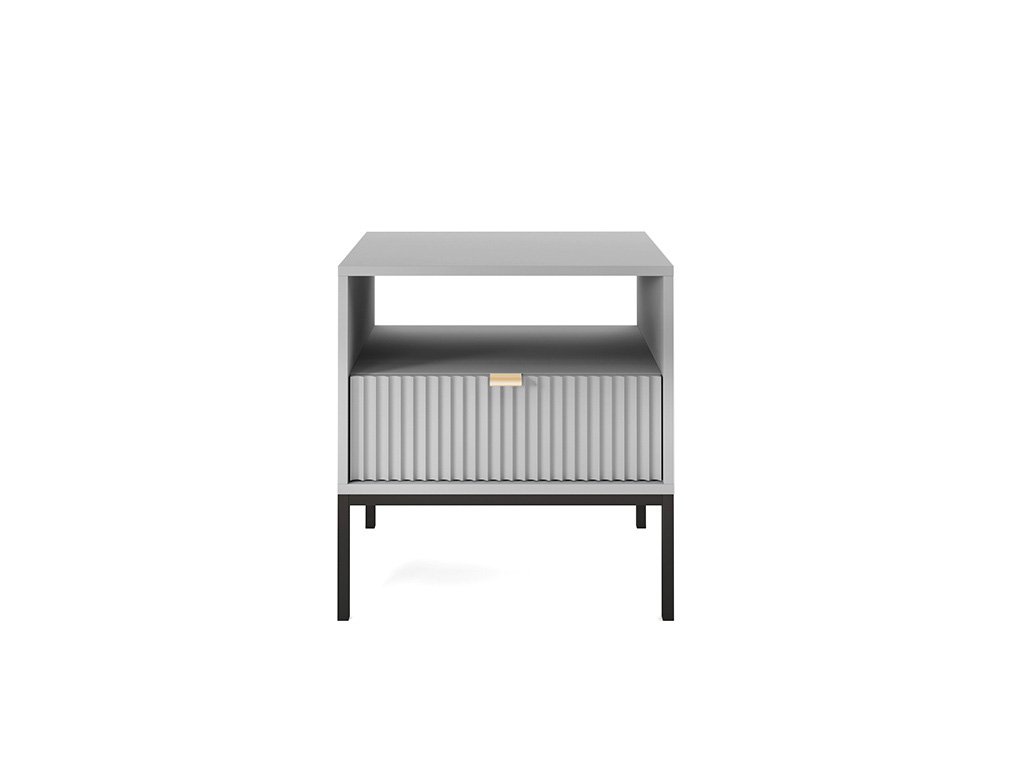Nočni omarica NOVA vas že na prvi pogled pritegne z netradicionalnim, a zato toliko bolj zanimivim dizajnom, ki pa ohranja moderne in preproste linije. Odlično se prilega konzervativneje urejenim stanovanjem, pa tudi v moderno spalnico. Zaradi visokih nogic se pod omarico enostavno sesa in vzdržuje red. Poleg svetlo sive imamo to nočno omarico, pa tudi ostale modele pohištva iz kolekcije NOVA na zalogi tudi v privlačni črni ali čisti beli barvi.
