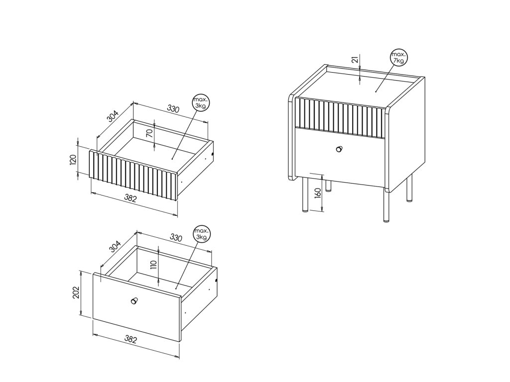 Nočna omarica Prestigo P12 je kos pohištva, v preprosti obliki z pridihom modernega sloga. S svojo obliko in modernim dizajnom se popolnoma prilega spalnici in nudi en predal za shranjevanje vaših drobnarij. Nočna omarica stoji na črnih kovinskih nogicah v višini 16 cm, kar zagotavlja dolgoletno odpornost in stabilnost pohištva. Kombinacija barv, kot so oreh Warmia, San Sebastian ali mat črna, bo obogatila vašo spalnico s prijetno atmosfero.