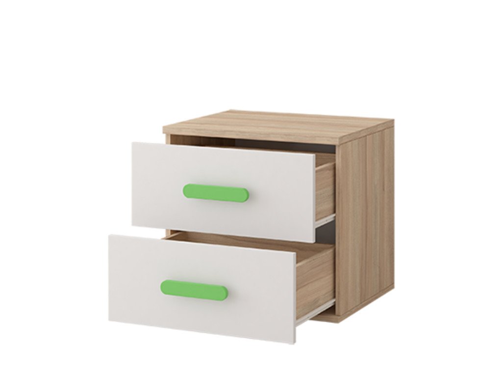 Pohištvo iz kolekcije SVEND - hrast sonoma je zasnovano tako, da bo služilo vašim otrokom dolga leta. Osnovna barva tega pohištva je hrast sonoma, ki otroški sobi pričara prijeten, preprost in čist vtis. Nočna omarica SVEND je opremljena z dvema predaloma. Del pohištva niso ročaji. Ročaje je potrebno dokupiti. Izbrana barva ročajev bo otroški sobi dodala veselost in igrivost. Ročaji v barvah rdeča, siva, modra, zelena, vijolična, oranžna, roza, hrast sonoma (po lastni izbiri). Za ta izdelek sta potrebna 2 kosa ročajev. Barvni ročaji se ujemajo z ostalim pohištvom iz kolekcije SVEND in so popoln dodatek tej kolekciji. Z nakupom ostalih komponent iz kolekcije SVEND boste ustvarili vašemu otroku stilsko in moderno otroško sobo.