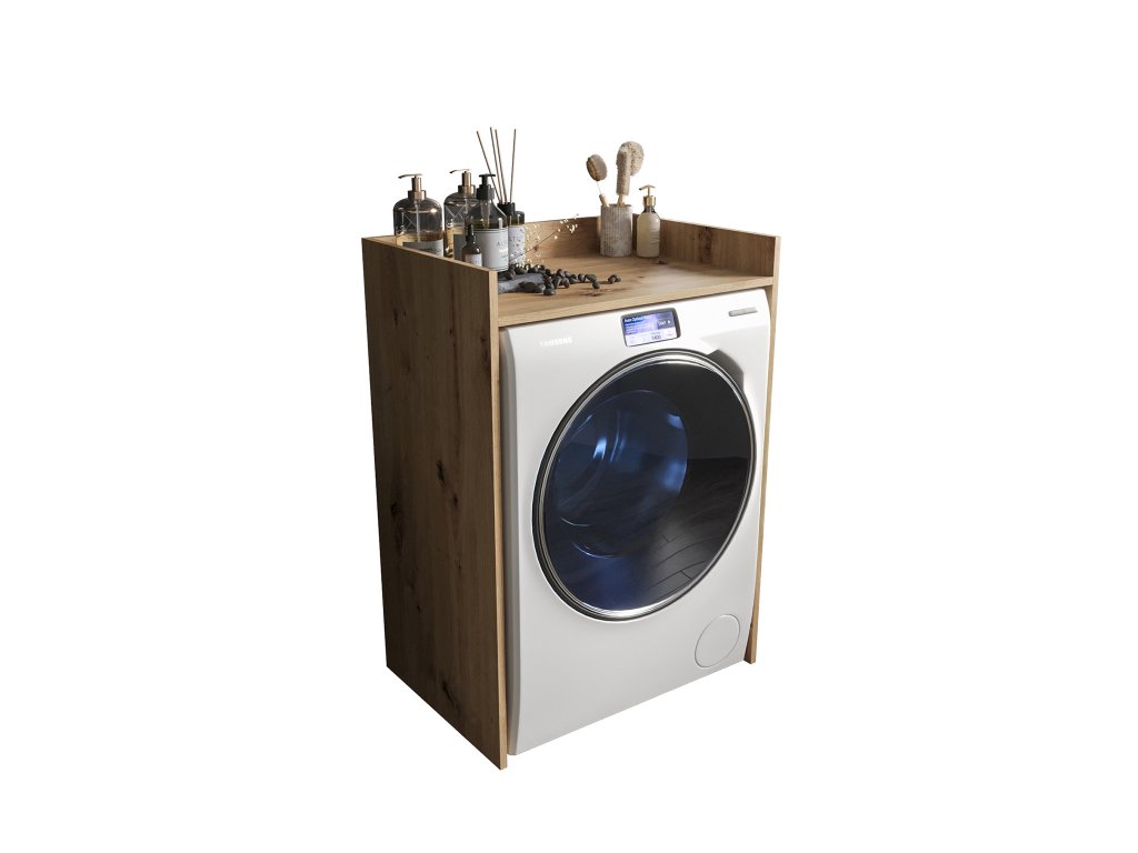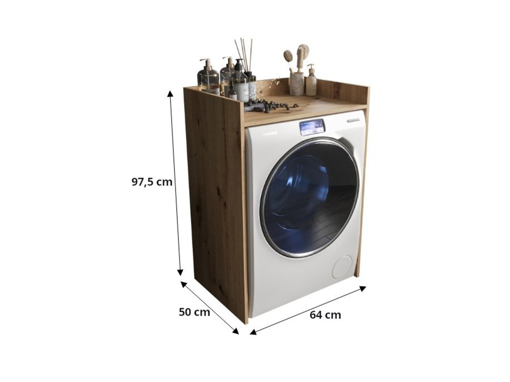 Tudi kopalnica je prostor, ki si zasluži izgledati estetsko lepo in enotno. Zahvaljujoč dizajnerski omari za pralni stroj ali sušilni stroj bo vaša kopalnica izgledala moderno. Omarica ima prostor za shranjevanje dodatkov, pralnih sredstev ali brisač. Izbira je vaša. Ta preprosta prevleka vam bo poenotila dizajn kopalnice in bo delovala kot narejena po meri. Omarica je iz laminirane plošče, katere debelina je 16 mm in robovi so zaključeni z 0,5 mm PVC furnirjem, odpornim proti poškodbam. Elementi omarice so povezani z ekscentričnimi spojkami. Montažni pribor in navodila so priloženi v paketu. Barva hrast artisan je dolgoročno večni trend.