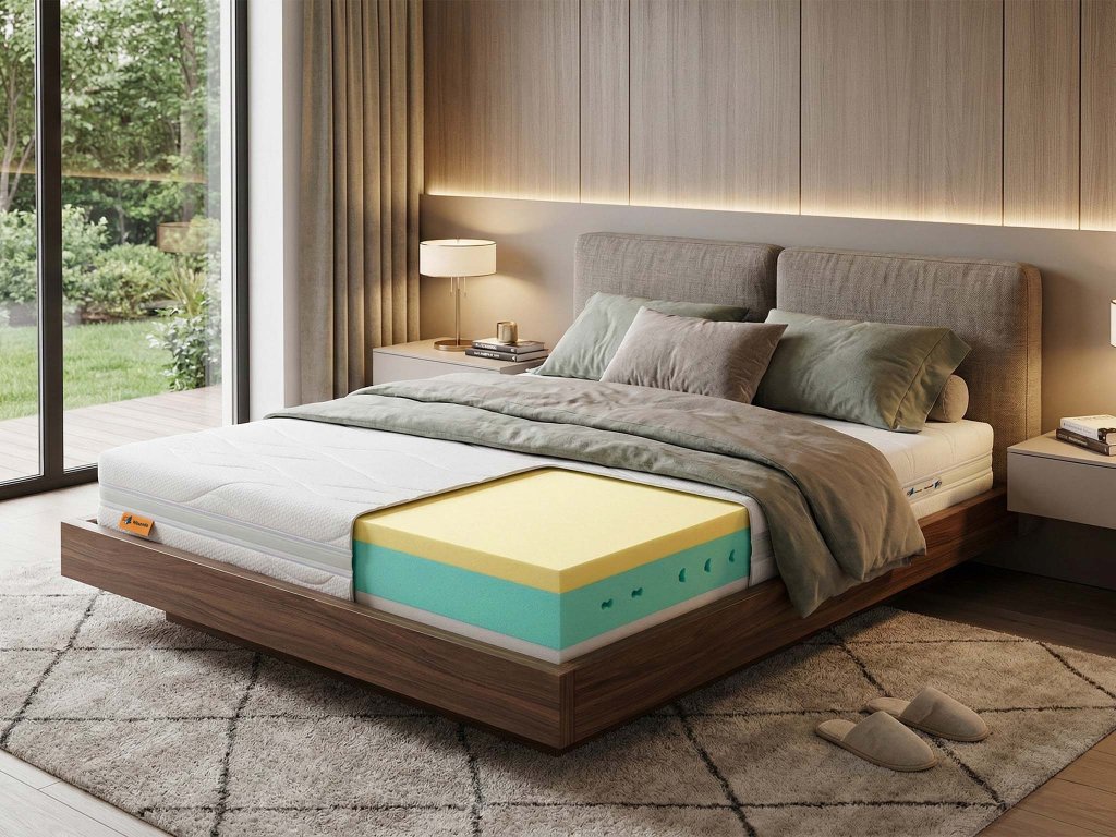 Vzmetnica Softina 100x200 je bila zasnovana tako, da združuje stabilno podporo hrbtenici z občutkom nežnega udobja. Jedro združuje HR Comfort, T35 odporno peno in spominsko Visco peno, ki se prilagaja obliki telesa in telesni temperaturi. Rezultat je enakomerna porazdelitev teže in zmanjšanje pritiska na sklepe in hrbtenico, kar podpira zdrav in regeneracijski spanec od prve noči.
