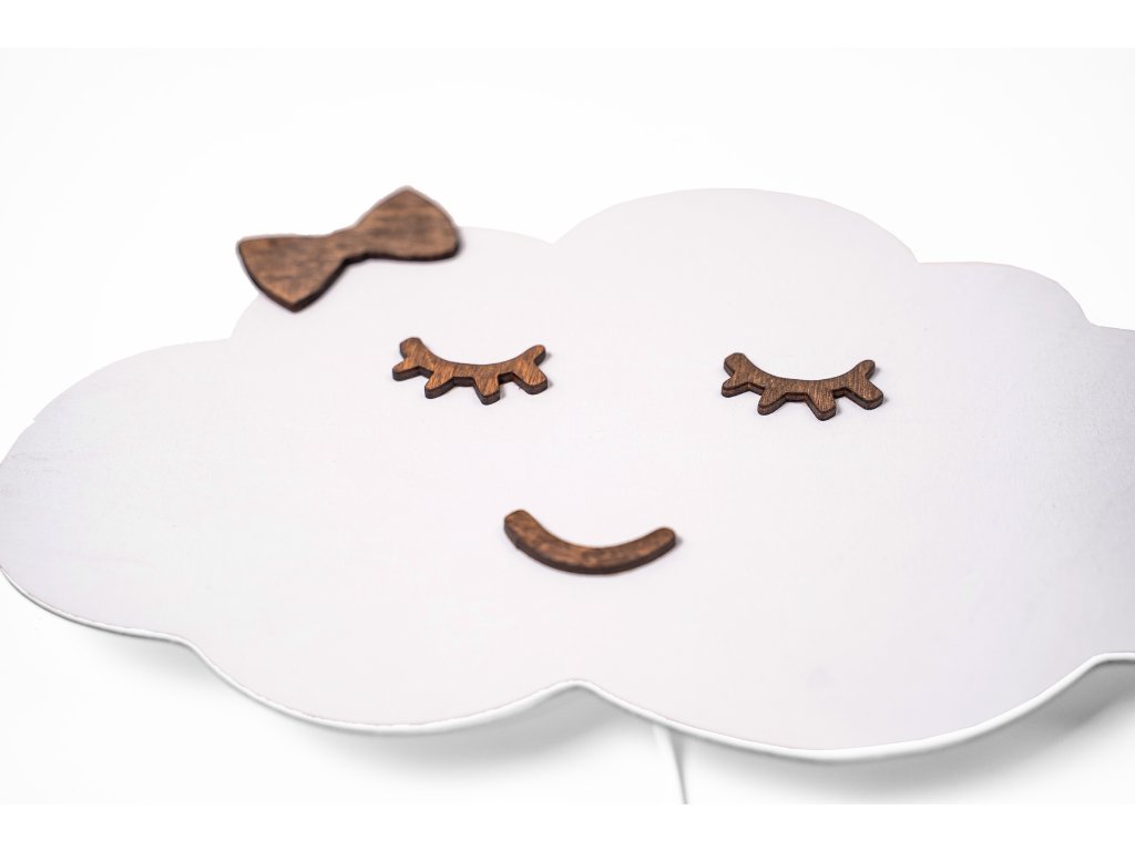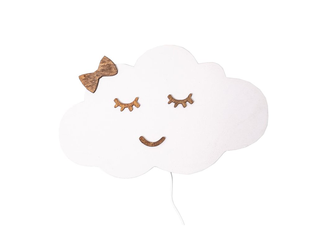 Otroška ročno izdelana svetilka v obliki oblačka z mašnico se bo prilegla v katerokoli dekliško sobico in bo vašemu otroku zvesta prijateljica pri večernem uspavanju. Pridušena osvetlitev bo zagotovila, da se vaš otrok ne bo bal pri uspavanju. Osvetlitev je zelo nežna in ne moti otrokovega spanca. Svetilka je energetsko varčna in zaščitena tudi pred radovednim ravnanjem otroških rok z električnimi komponentami svetilke.