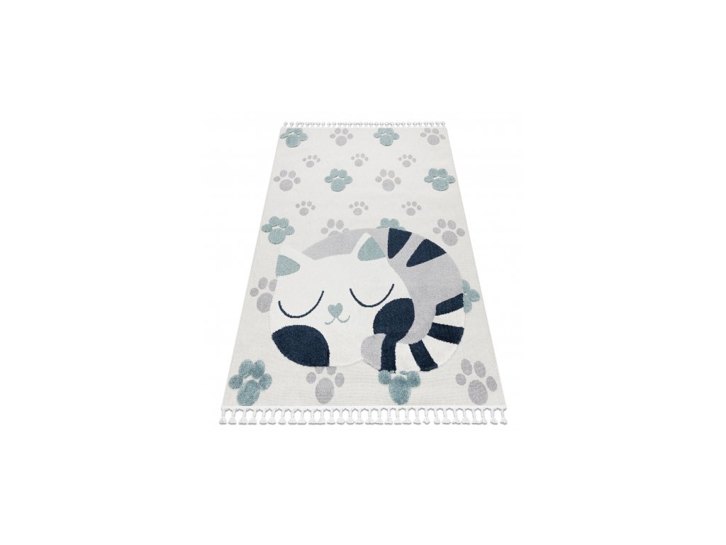 Oživite otroško sobo z našo strukturirano in senzorično preprogo Kotek, ki bo prinesla veselje in udobje v vsak korak. Ta pravokotna preproga v beli barvi je izdelana iz kakovostnega poliestra, kar zagotavlja njeno trpežnost in enostavno vzdrževanje. Zaradi nežnih resic in igrivega dizajna z motivom mačke bo postala priljubljeno mesto za igro in počitek vaših otrok. Strukturirana preproga ima površino z različnimi višinami in teksturami vlaken, ki ustvarjajo zanimiv vizualni in otipni učinek.