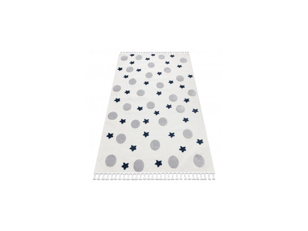Oživite otroško sobo z našo strukturirano in senzorično preprogo Yoyo, ki združuje igrivost in funkcionalnost. Ta preproga v kremni barvi je izdelana iz kakovostnega poliestra, kar zagotavlja njeno trpežnost in enostavno vzdrževanje. Pravokotna oblika in nežni resice na robovih dajejo preprogi moderen videz, medtem ko vzorci zvezdic in krogov spodbujajo otroško domišljijo. Idealna za otroške igre in sprostitev. Strukturirana preproga ima površino z različnimi višinami in teksturami vlaken, ki ustvarjajo zanimiv vizualni in otipljiv učinek.