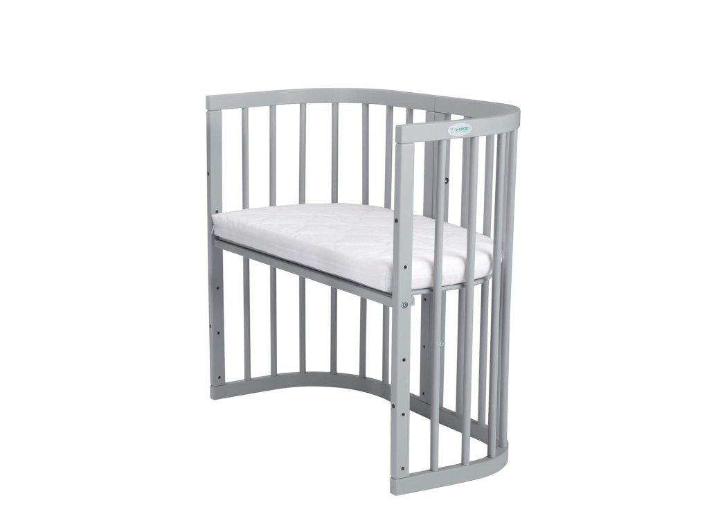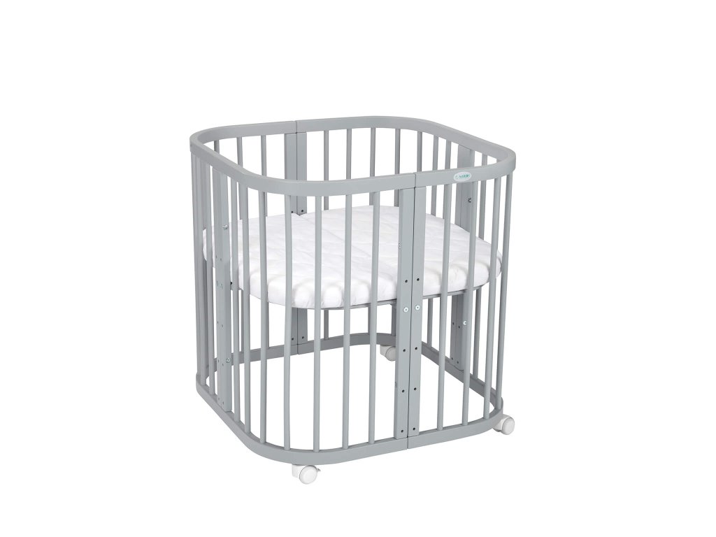 Otroška posteljica 7v1 v moderni sivi barvi je resnično večnamenska in bo del vašega doma več let. Najmanjši del je pristeljka za dojenčka, ki jo lahko postavite neposredno ob zakonsko posteljo in jo pritrdite s posebnim varnostnim pasom, da se ne premakne. Do 6 mesecev starosti otroka lahko uporabljate tudi manjšo posteljico na kolesih s previjalno mizo. Kolesa imajo varnostno zavoro. Ko posteljico odblokirate, jo lahko enostavno premikate in prestavljate v dnevno sobo ali kuhinjo. Otroška rastna posteljica je na voljo v več barvnih različicah.