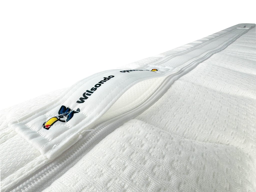 Izjemnost vzmetnice Luna je poudarjena s kakovostnim odstranljivim prevlekom. Ta posebna prevleka Aloe Vera ne le da zagotavlja antibakterijske lastnosti in ščiti pred alergeni, ampak je tudi zasnovana za enostavno vzdrževanje. Prevleko lahko udobno perete v pralnem stroju pri temperaturi do 30 stopinj, kar zagotavlja dolgotrajno čistočo in svežino vzmetnice. 3D trak na prevleki vzmetnice je inovativna tehnologija, ki zagotavlja učinkovito prezračevanje in optimalno kroženje zraka. Ta posebna plast materiala pomaga ohranjati vzmetnico čisto in suho, kar prispeva k boljšemu spancu. Praktičnost vzmetnice je poudarjena s štirimi ročaji na straneh, ki olajšajo manipulacijo in omogočajo enostavno obračanje in premikanje vzmetnice po potrebi. Vzmetnica Luna je na voljo tudi v dimenziji do 180x200 cm, kar zagotavlja dovolj prostora za individualni ali parni spanec, vse to brez kompromisov na področju udobja in kakovosti. Izberite vzmetnico Luna za zdrav spanec in maksimalno podporo, ki jo vaše telo potrebuje, da se vsako jutro zbudite polni energije.