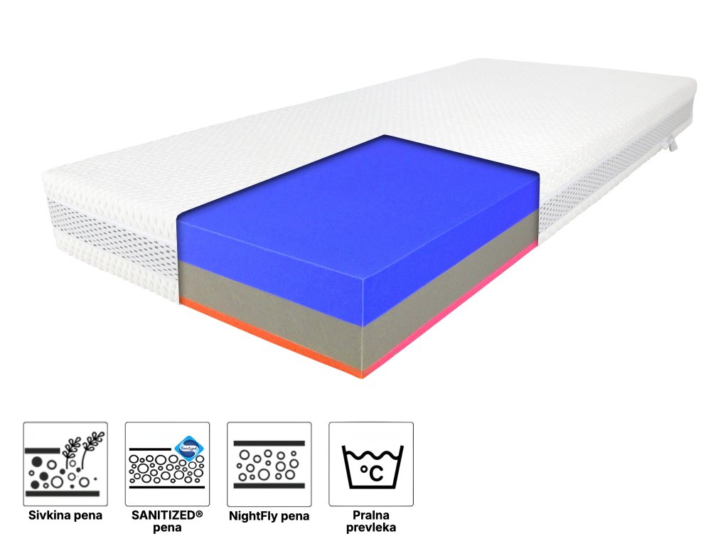 Materialna sestava: Sivkina pena, NightFly pena, Sanitized pena, Prevleka