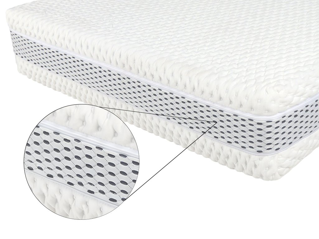 Antibakterijska pena PUR z obdelavo SANITIZED, ki ščiti pred glivicami in plesnimi. Poleg tega lahko peno zaščiti tudi pred neprijetnimi vonjavami, ki jih povzročajo ti organizmi. Zaščita SANITIZED bo zagotovila daljšo življenjsko dobo vzmetnice in bolj zdravo okolje za spanje.