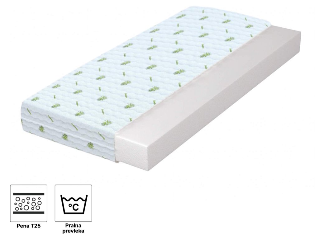 Penasta vzmetnica 200x90 je namenjena predvsem strankam, ki želijo kakovost po nižji ceni. Vzmetnica spada v kategorijo srednje trdih vzmetnic. Izdelana je iz zračne poliuretanske pene T25, ki se odlikuje po visoki elastičnosti in povečani odpornosti. Vzmetnica je obojestranska in zaradi nizke teže je z njo enostavno ravnati. Vzmetnica ima antialergijsko prevleko z zadrgo Aloe Vera, ki je pralna v pralnem stroju na 30 °C.