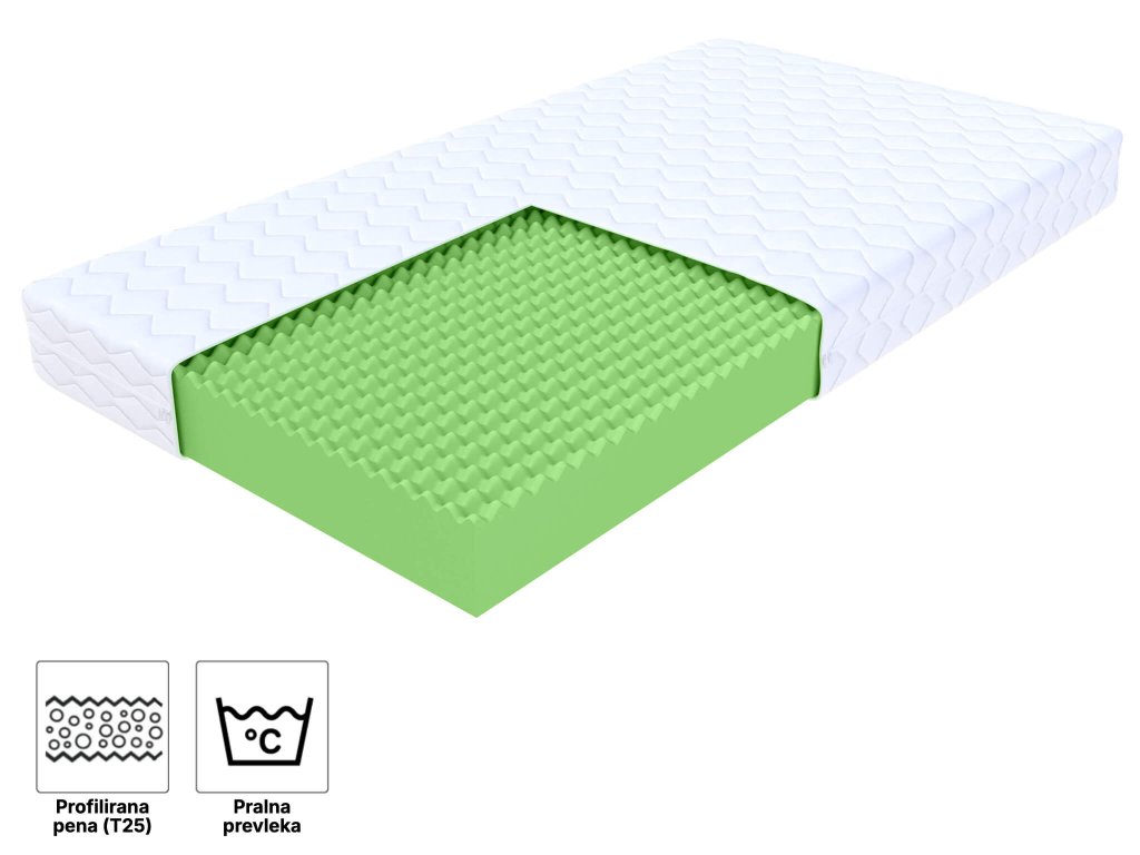 Profilirana 7-conska visokokakovostna pena poskrbi za boljšo prekrvavitev kože in sprostitev mišic med spanjem. Glede na telesno temperaturo se prilagaja obliki telesa in tako izboljša kakovost spanca. Zaradi 7-conskega sistema trdote zagotavlja hrbtenici in celotnemu telesu naravno lego in podporo. Ta pena je primerna tudi za alergike.