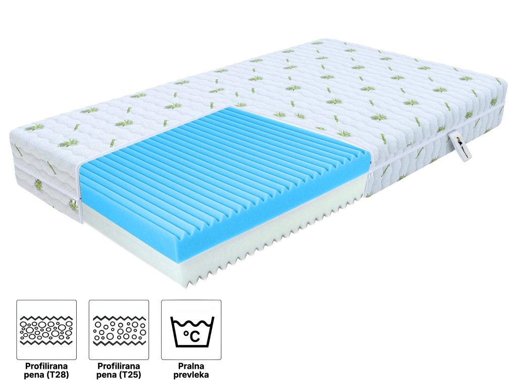 Profilirana 7-conska visokokakovostna pena poskrbi za boljšo prekrvavitev kože in sprostitev mišic med spanjem. Glede na telesno temperaturo se prilagaja obliki telesa in tako izboljša kakovost spanca. Zaradi 7-conskega sistema trdote zagotavlja hrbtenici in celotnemu telesu naravno lego in podporo. Ta pena je primerna tudi za alergike.