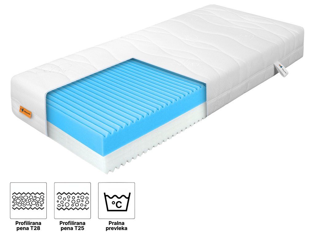 Profilirana 7-conska visokokakovostna pena poskrbi za boljšo prekrvavitev kože in sprostitev mišic med spanjem. Glede na telesno temperaturo se prilagaja obliki telesa in tako izboljša kakovost spanca. Zaradi 7-conskega sistema trdote zagotavlja hrbtenici in celotnemu telesu naravno lego in podporo. Ta pena je primerna tudi za alergike.