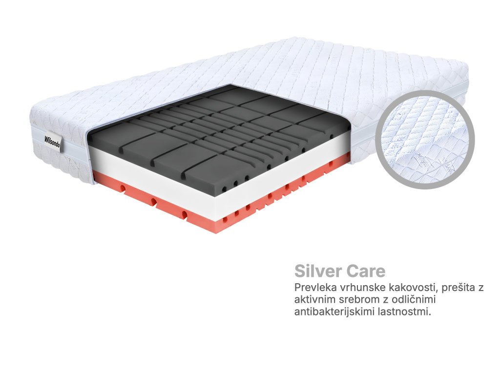 Vzmetnica Amico je opremljena s kakovostno odstranljivo prevleko Silver, ki je prešita z aktivnim srebrom. Ta antibakterijska obdelava pomaga ohranjati vzmetnico svežo, higiensko in brez neželenih vonjav. Za enostavno vzdrževanje je prevleka pralna v pralnem stroju na 30 °C. Za boljšo zračnost je prevleka opremljena s 3D ventilacijsko trakico, ki podpira stalno kroženje zraka in odvaja vlago. Priporočamo uporabo zaščitne prevleke za vzmetnico, ki še dodatno podaljša življenjsko dobo vzmetnice in zagotovi njeno maksimalno zaščito.