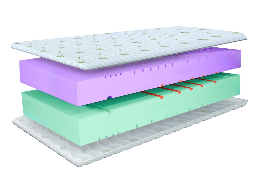 Materialna sestava: PurpleFlex pena, VerdeSoft pena, ErgoRoll valjčki, prevleka Aloe Vera
