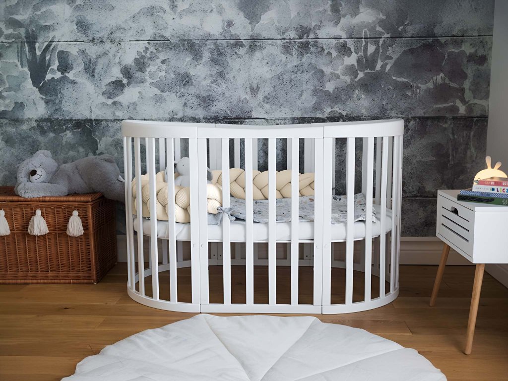 Oblikovana okrogla rastoča posteljica 7v1 v beli barvi