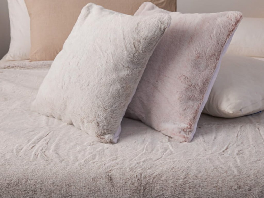 Kožušinasta prevleka Vela v velikosti 45x45 cm je izdelana iz materiala z gramatur 560g/m2 ki spominja na zajčjo kožuščino. Prevleka za blazino je obojestranska - spodnji del je podložen z mikrovlaknom v barvi, ki se ujema z zunanjo stranjo. So puhaste in mehke. Poleg praktičnih vidikov izpolnjuje tudi dekorativno vlogo – ustvarja toplo, izjemno modno atmosfero, kot nalašč za zimske večere. Mehka prevleka za blazino je zelo praktična , saj jo je mogoče prati v pralnem stroju do 30 °C.