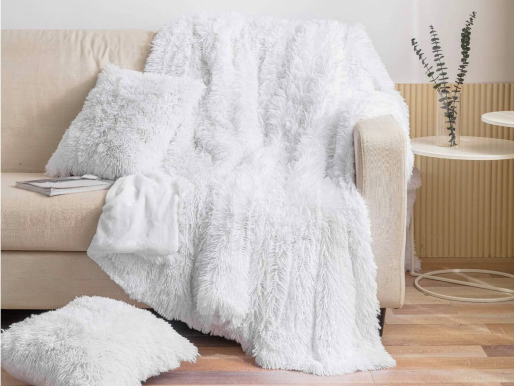 Bela prevleka za blazino 40x40 Furry se popolnoma prilega blazini enake velikosti.Zgornja kosmatena plast je sestavljena iz 100% poliestra, medtem ko je spodnja iz mikrovlaken z gramaturou 460g/m2. Prevleka je izjemno mehka in prijetna na dotik, pri čemer oblečena na blazini čudovito okrasi vsako posteljo, kavč ali fotelj. Na spodnji strani se zapira na zadrgo. Prevleka se odlikuje z uporabo kosmate strukture z dolžino vlaken približno 3 cm, kar ji daje prostorski učinek. Široka paleta barv omogoča vsakomur, da si notranjost prilagodi po svojem okusu.