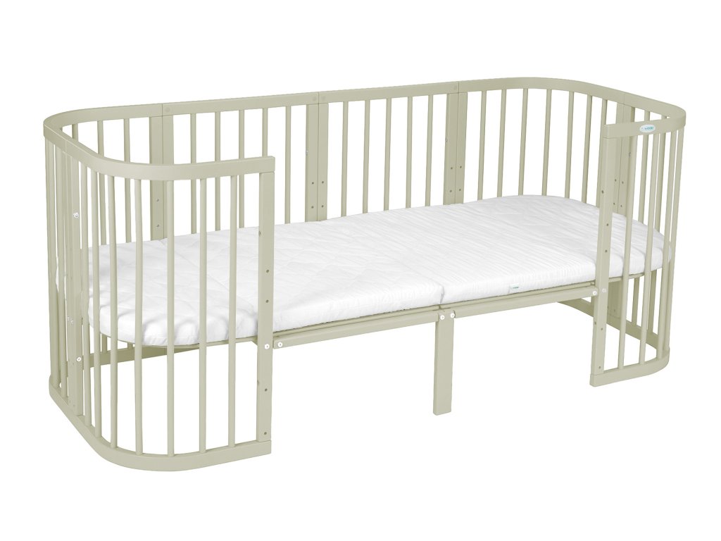 Razširitev za olivno zeleno rastočo posteljico 7v1 zagotavlja, da boste lahko priljubljeno posteljico svojega otroka uporabljali veliko dlje in vam ne bo treba kupovati nove. Dovolj je, da kupite razširitev in posteljica bo služila naprej kot prej. Razširitev je iz enakih materialov kot posteljica, tako da se tudi barvno lepo ujema in vaš otrok se ne bo moral privajati na novo posteljo. Prednost je, da pod razširjeno rastočo posteljico lahko shranite dve škatli za shranjevanje. Po dodajanju razširitve se skupna dolžina posteljice poveča na 173 cm (notranji del posteljice na 168 cm).