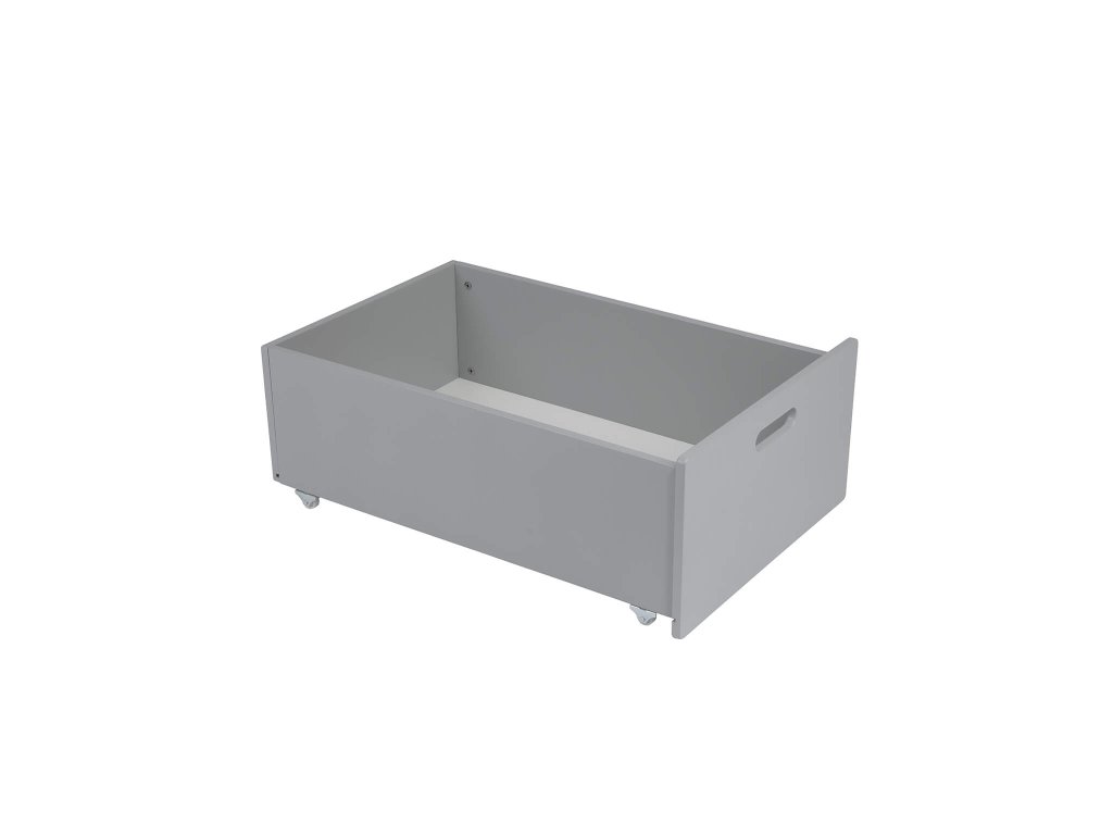 Siva škatla za shranjevanje za otroško posteljico 7v1. Škatla za shranjevanje se prilega pod klasično in pod ovalno otroško posteljico 7v1. Ko odstranite stranico posteljice in nastavite rešetko na minimalno potrebno višino, pod posteljico nastane prosti prostor, v katerega se prilega škatla za shranjevanje. Predal vam bo pomagal optimalno izkoristiti prostor pod otroško posteljico, ki bi sicer ostal prazen. Otroci lahko v škatlo shranjujejo igrače ali pa imate v njej shranjene blazine in odeje.