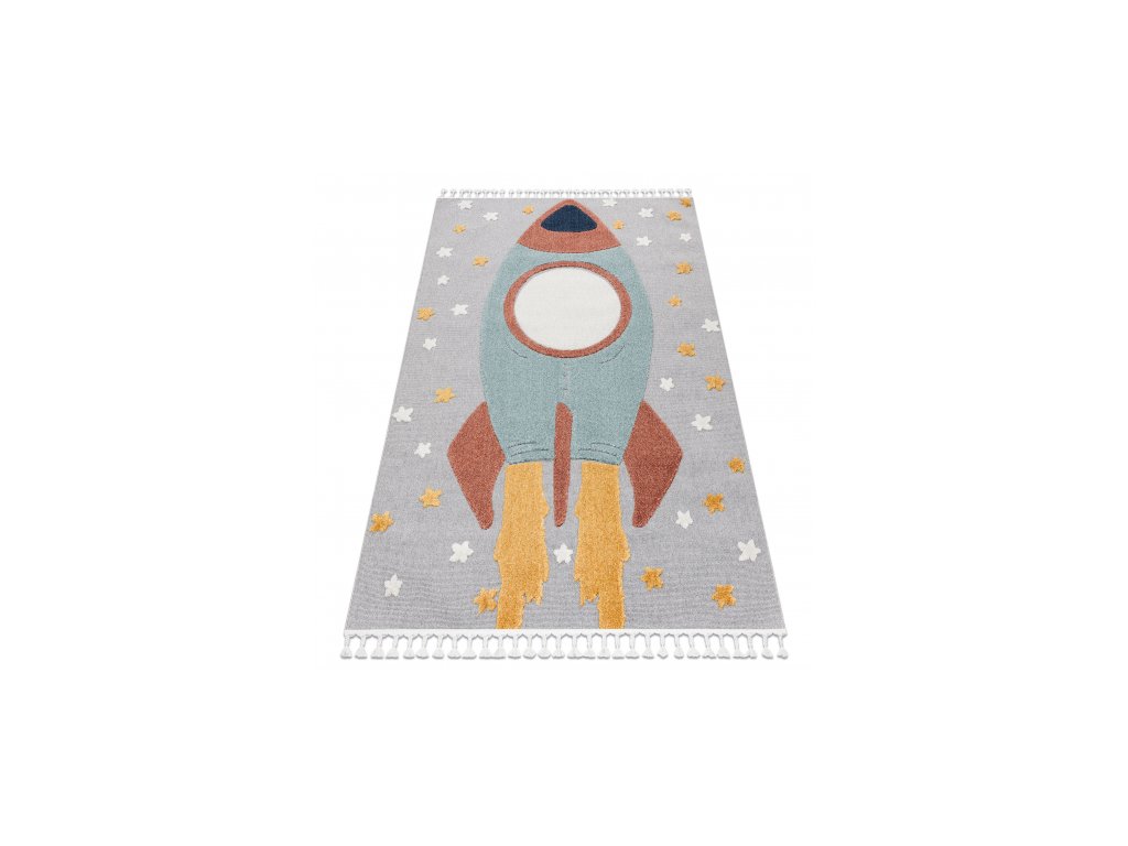 Ustvarite v svoji otroški sobi vesoljsko atmosfero z našo sivo otroško preprogo Yoyo. Ta preproga je zasnovana z raketo in zvezdicami, ki spodbujajo otroško domišljijo in radovednost. Izdelana iz poliestera, je ne le mehka in udobna, ampak tudi odporna proti obrabi. Njena pravokotna oblika in nežni resice na robovih dajejo prostoru igriv in prijeten videz. Idealna za otroke, ki obožujejo raziskovanje in pustolovščine. Strukturirana preproga ima površino z različnimi višinami in teksturami vlaken, ki ustvarjajo zanimiv vizualni in otipni učinek.