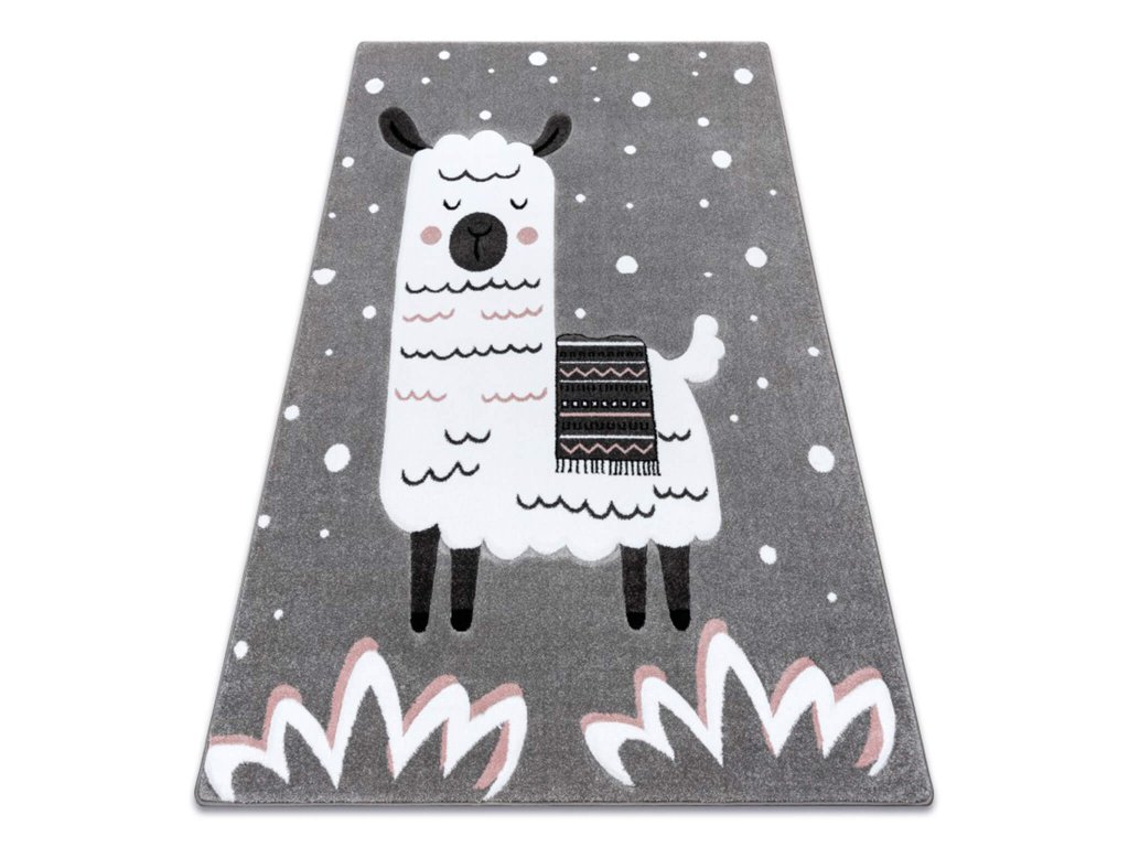 Ustvarite varno in udobno okolje za vaše otroke z našo otroško preprogo Lama. Ta preproga je praktičen in tudi stilski dodatek v otroški sobi. Motiv lame skupaj s pikami in drugimi vzorci bo postal privlačnost v vsaki otroški sobi. Primarno je namenjena dekletom. Otroška preproga je izdelana iz 100% polipropilena. Gostota vlaken je 2500 g/m2 in višina vlaken je cca 13 mm. Ta tip preproge je namenjen tudi otrokom, ki trpijo zaradi možnih alergij. Njeno vzdrževanje je enostavno s pomočjo sesalnika ali rahlo navlažene krpe. Ponujamo različne variante te preproge, tako da lahko izberete pravo velikost za vašo sobo.
