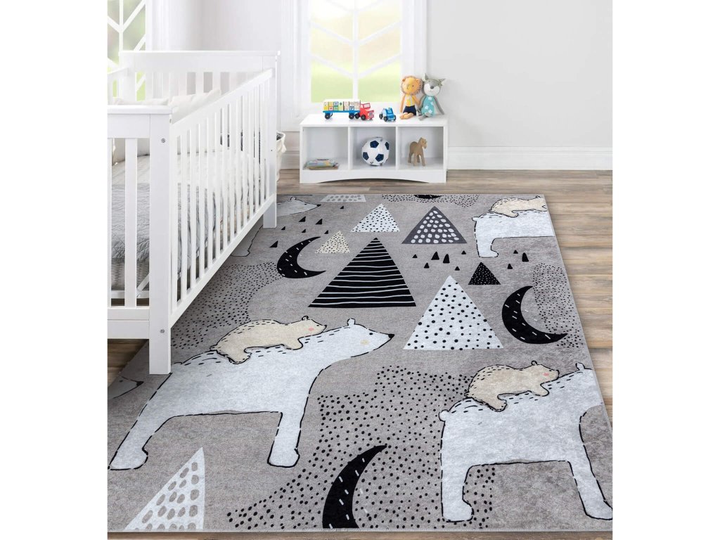 Siva protizdrsna preproga Medved in mladič